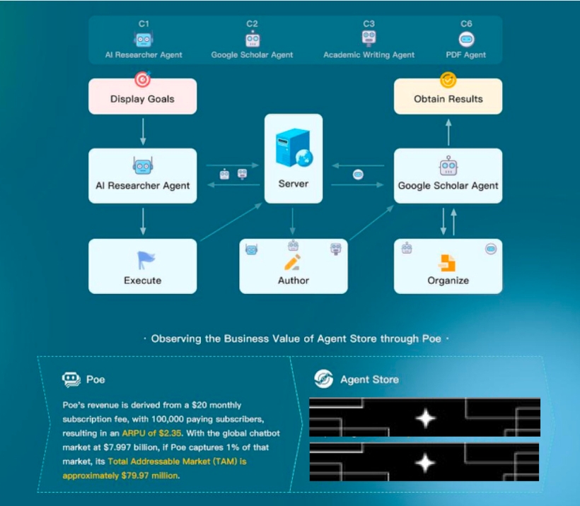 حاليًا، تطبيقات الذكاء الاصطناعي في مرحلة الانفجار المبكر. يتم تداول التطبيقات الساخنة وتوزيع المعلومات بين مختلف الشخصيات المؤثرة (KOLs). يشعر أعضاء المجتمع بالارتباك كل يوم. يتم تغطية التطبيقات عالية الجودة بسهولة بجولة جديدة من النقاط الساخنة قبل أن يتم تحقيق الدخل منها، ويقوم المستخدمون بالتبديل بشكل متكرر بين التطبيقات. نحن نحقق التكامل العضوي بين المستخدمين والمطورين من خلال التجميع. يهدف متجر الوكلاء إلى جمع المستخدمين والمطورين معًا. على جانب المستخدم، يوفر للمستخدمين منصة لاكتشاف واستخدام تطبيقات الذكاء الاصطناعي عالية الجودة بسهولة. على جانب المطور، يوفر للمطورين الأدوات اللازمة لإنشاء وكلاء بأنفسهم لمساعدة المطورين في حل قضايا تحقيق الدخل.