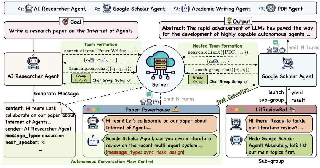 代理交互式智能互联网是未来的主要发展趋势。群聊通过在平台上调用不同的代理形成。用户向群聊发送任务,代理独立理解并完成相应的任务响应。最后,根据每个代理消耗的代币进行扣款。