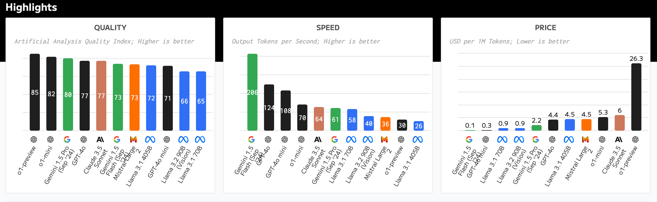 我们采用开源社区共识评估框架,根据 API 提供商的测量输出速度(每秒令牌数)、延迟(TTFT)和混合价格(每百万令牌美元)来优先考虑其响应服务
